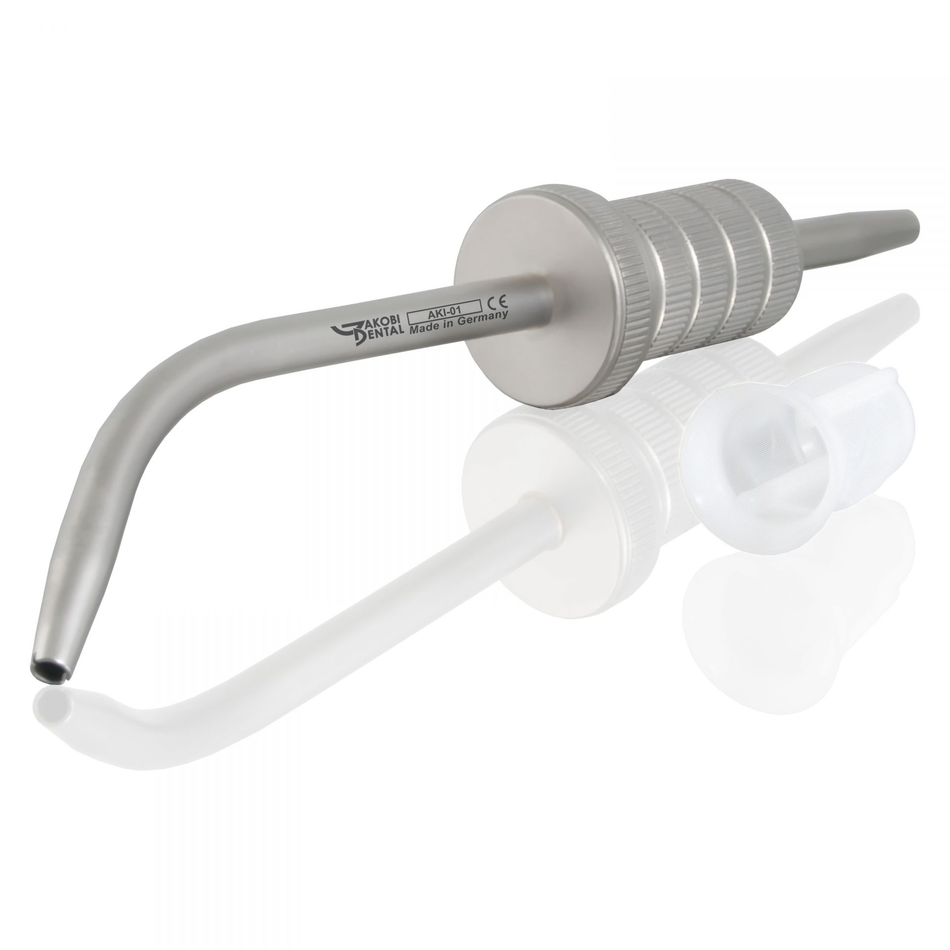 Le collecteur d’os Jakobi vous permet de collecter facilement de la matière osseuse autologue, par exemple lors de la préparation du site d’implantation. Il peut être facilement intégré à n’importe quelle aspiration standard de votre unité. L’os accumulé est directement absorbé par l’aspiration dans le filtre et peut être utilisé pour l’augmentation.